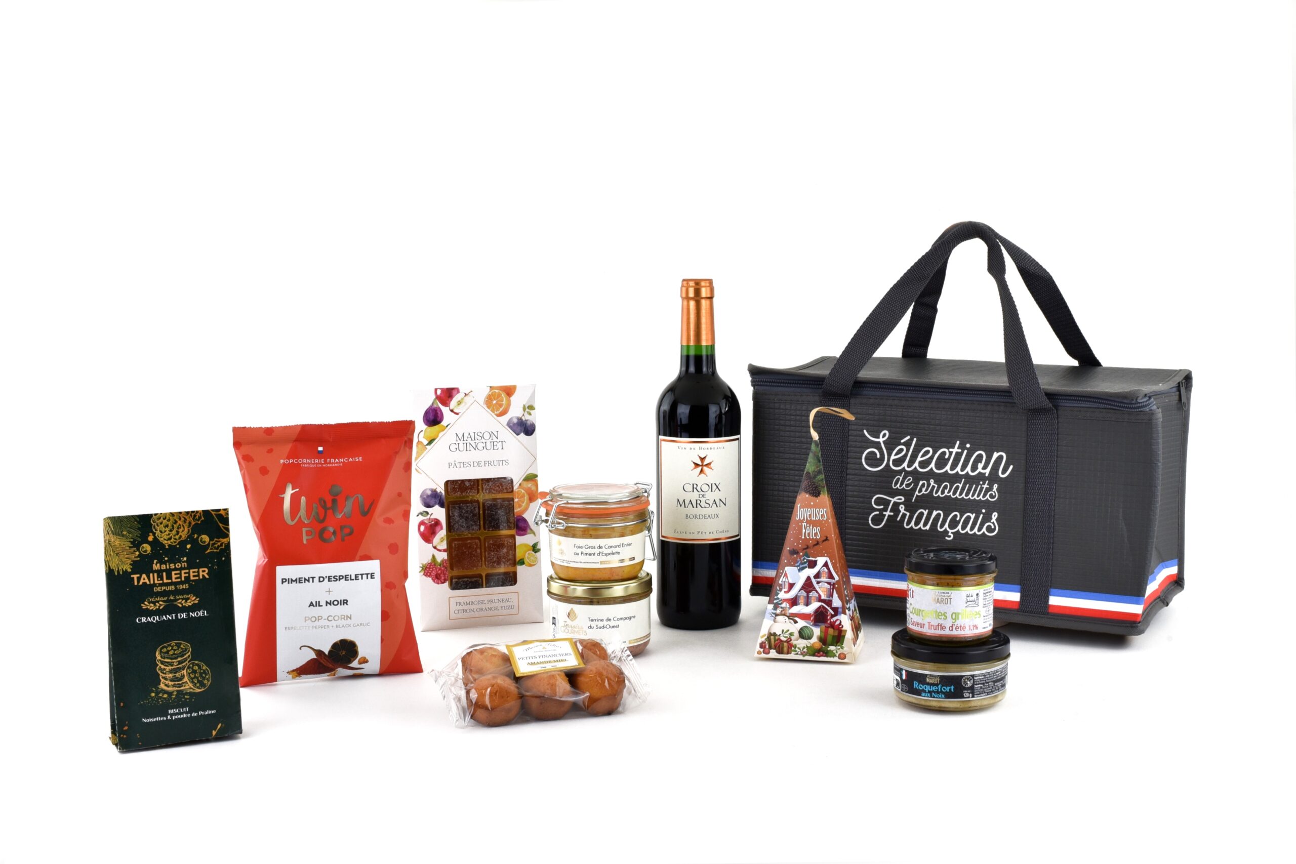 Entre gourmandises sucrées raffinées et créations salées de caractère, chaque produit révèle l’excellence et le savoir-faire artisanal du Sud-Ouest. Présenté dans un sac isotherme élégant aux couleurs des produits français, ce coffret incarne le raffinement et la tradition, pour un cadeau aussi noble qu’inoubliable.